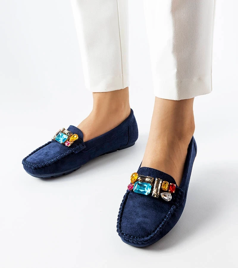 Kék kristályokkal díszített öko szarvasbőr Lilja cipők