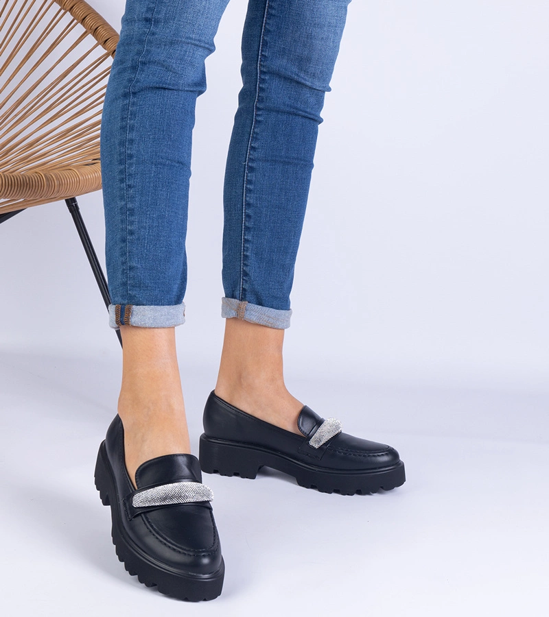 Adiba cirkóniával díszített fekete mokaszinok