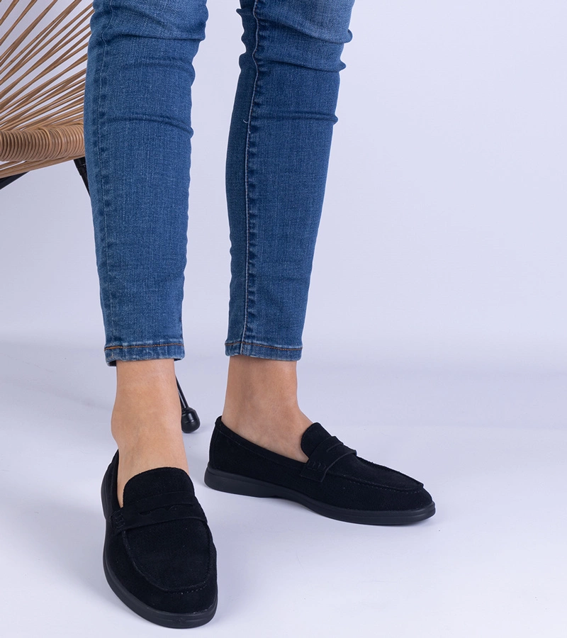 Sargossi fekete klasszikus lélegző öko-velúr mokaszinok