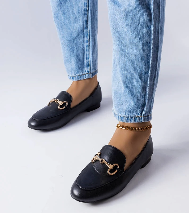 Fekete lakk mokaszin cirkóniával díszített Laures