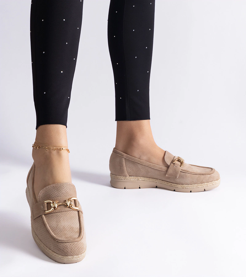 Sandoval női bézs lyukacsos mokaszinok öko velúrból
