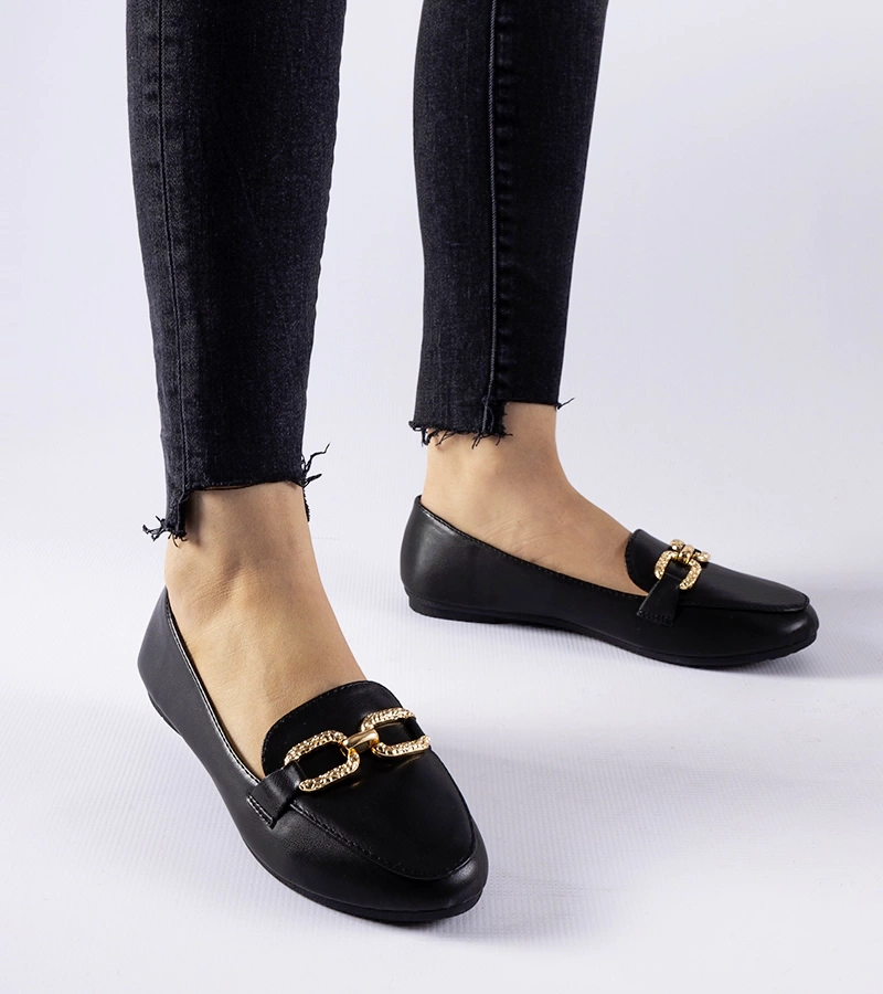 Fekete cirkóniákkal díszített mokaszinok Hartford