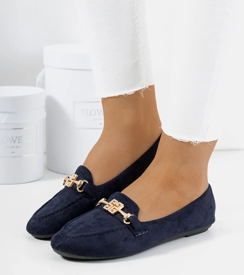 Sötétkék ökobársony mokaszin cirkóniával Minilla