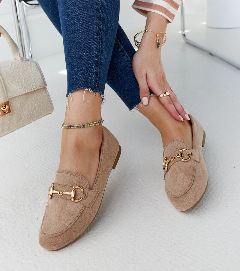 Bezs mokaszin Center láncdíszítéssel