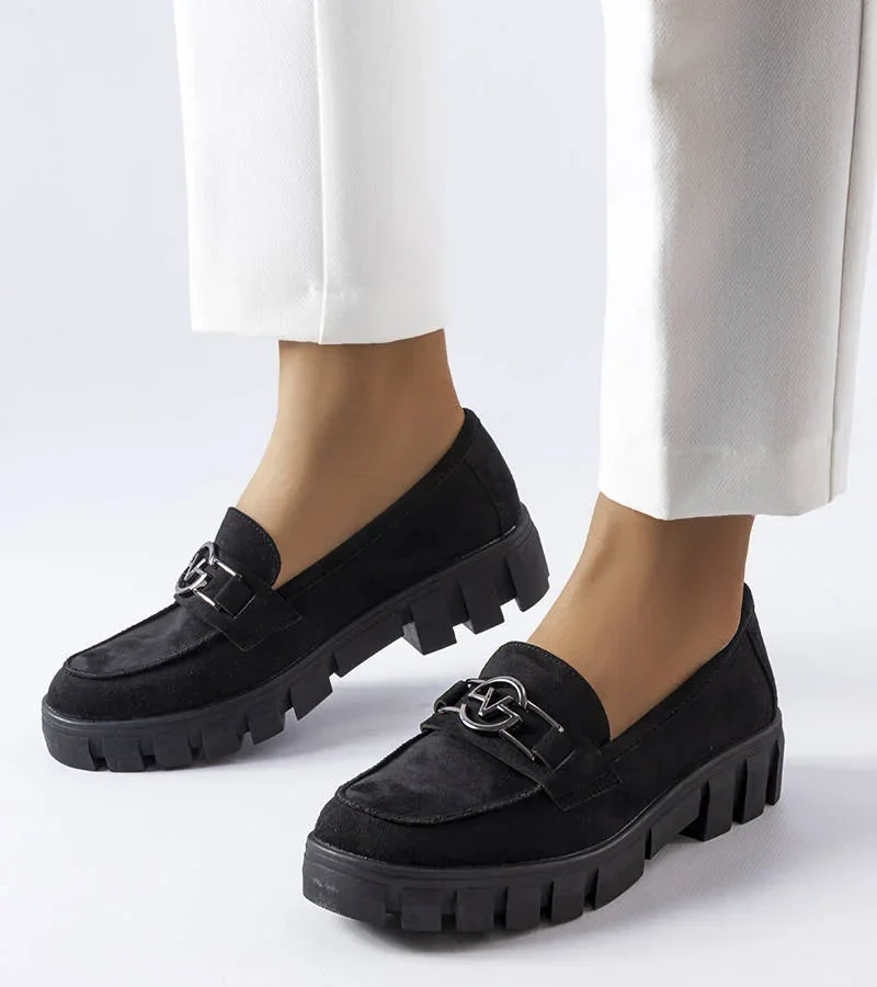 Fekete vastag talpú Casgrain mokaszinok