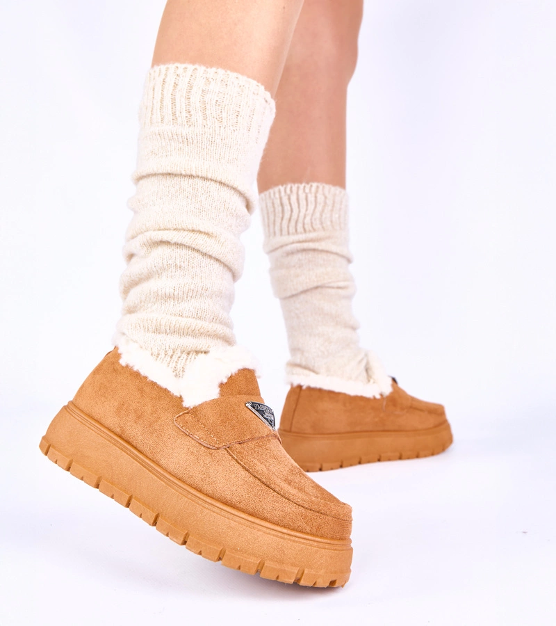 Barna mokaszinok masnival és arany medvével díszítve Nensi