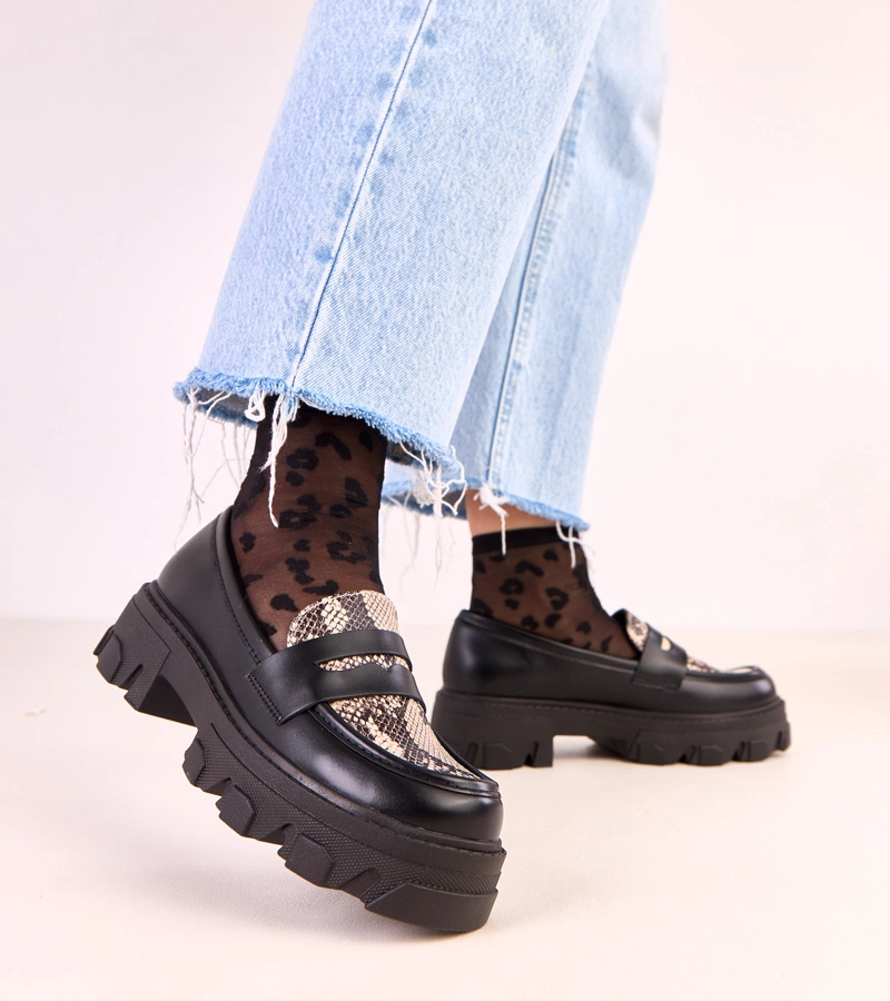 Fekete Loaferek Kígyóbőr Mintával Loles