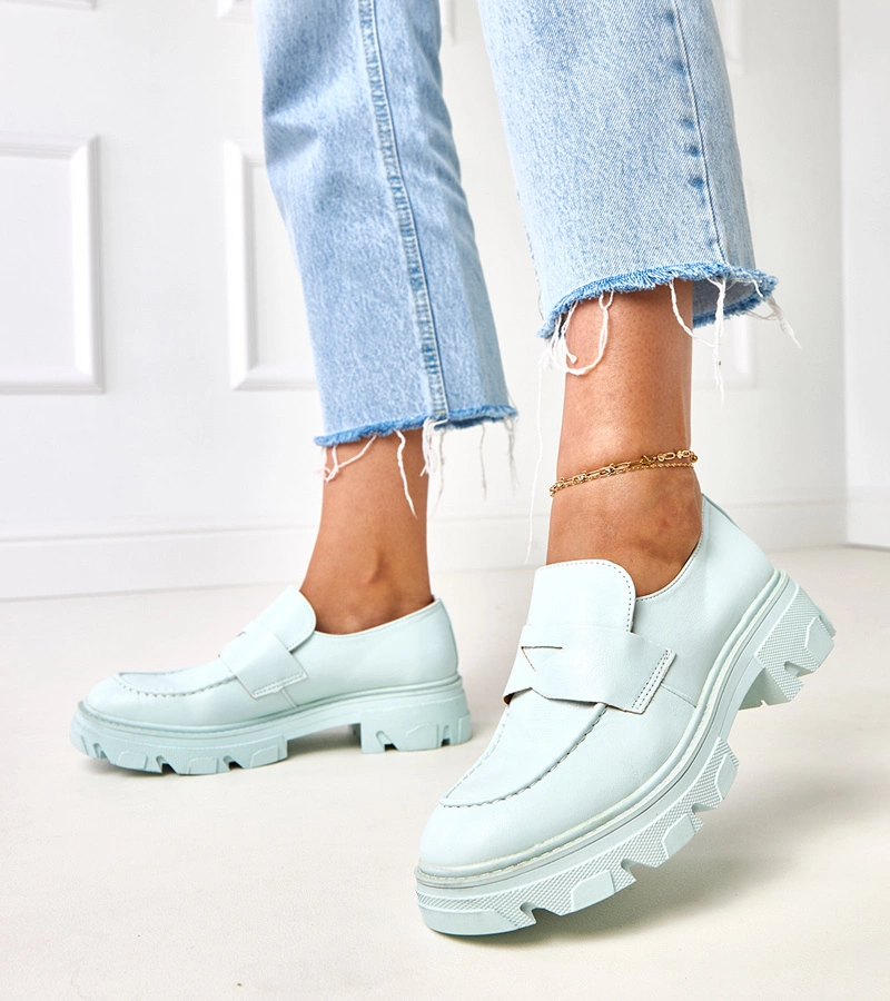 Kék színű mokaszinok Beltsville öko-bársonyból