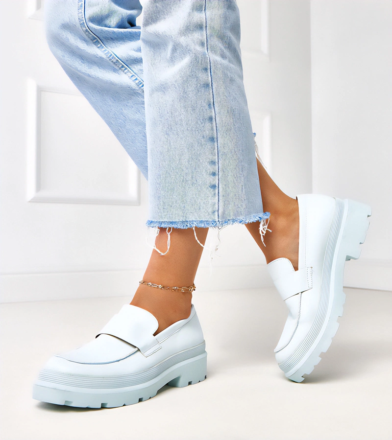 Erminia csatokkal ellátott gránát kék mokaszinok