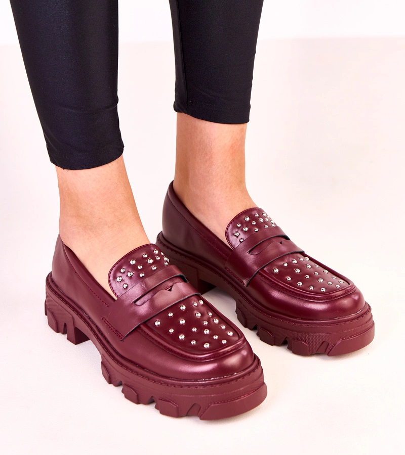 Memolis szegecses bordó női mokaszin