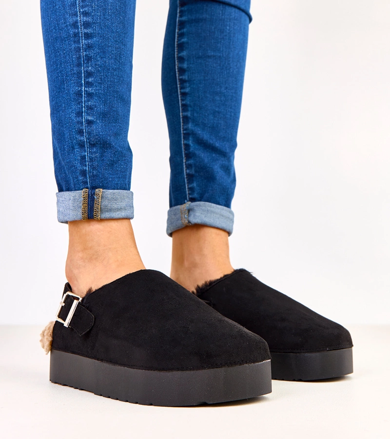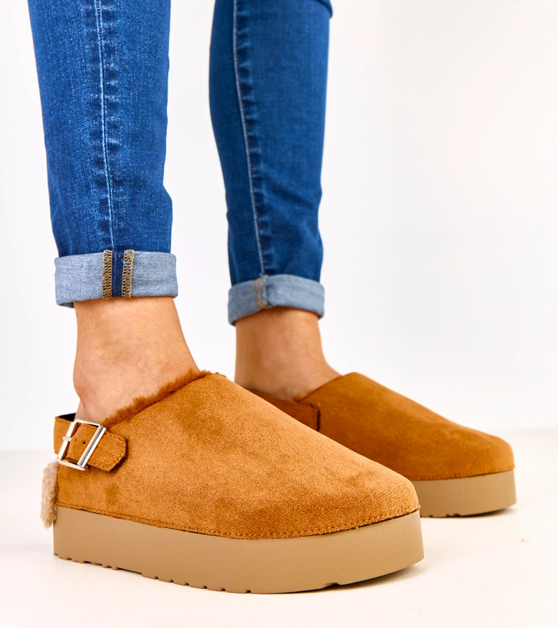 Arany papucsok platformon szőrmével díszítve gumival a saroknál Asza