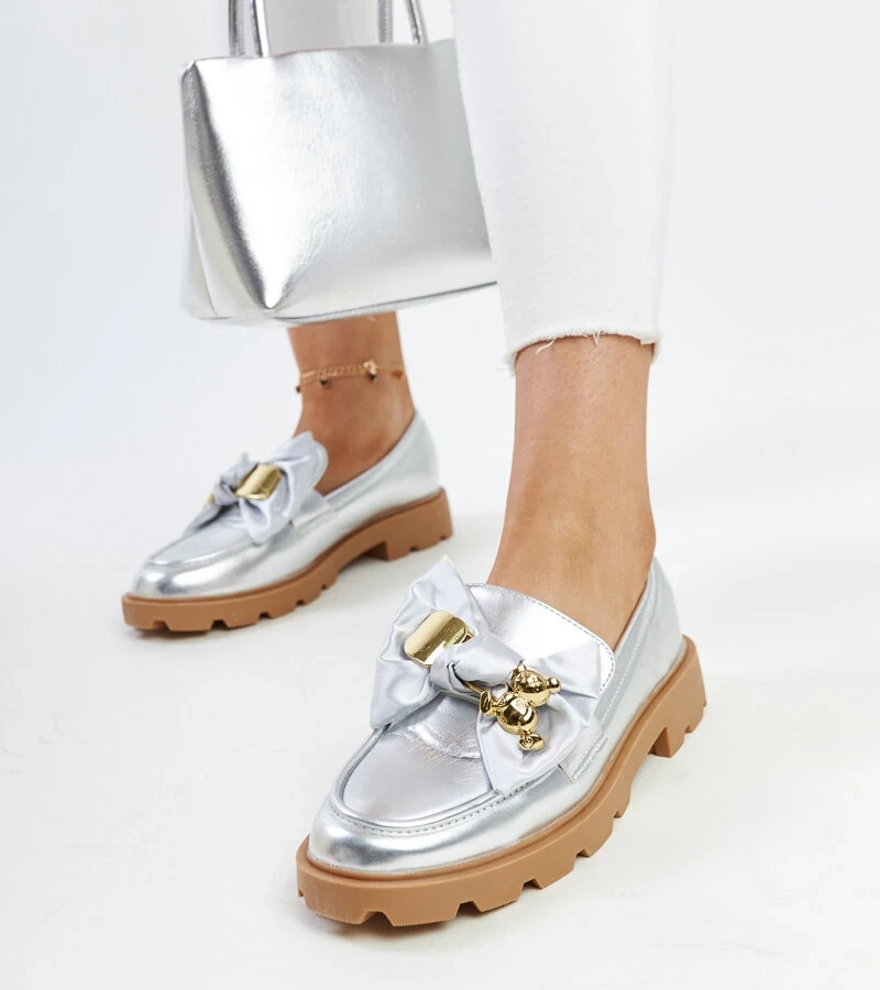 Bogumil díszes csattal ellátott ezüst mokaszinok