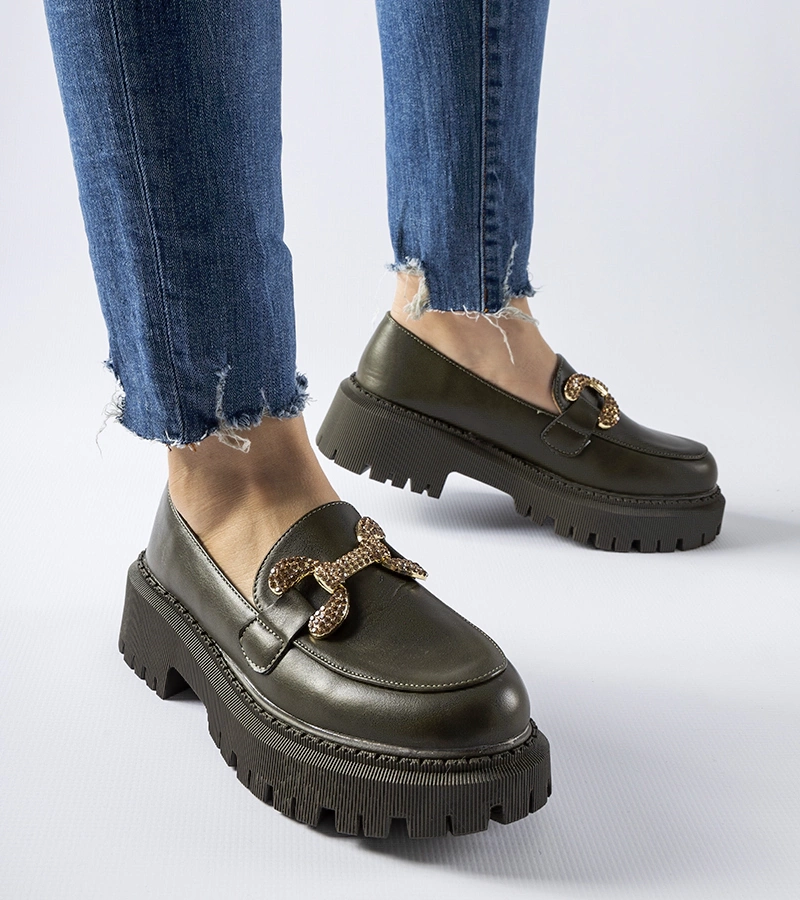 Fekete cirkóniákkal díszített mokaszinok Hartford