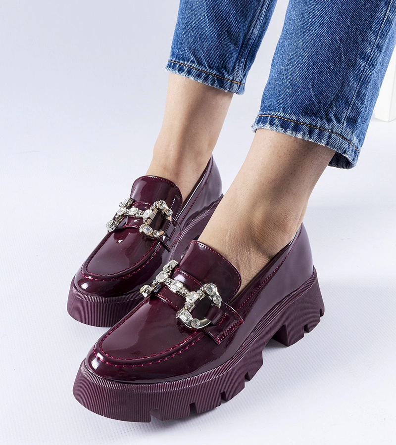 Bordó lakkozott mokaszin cirkóniákkal Cezet
