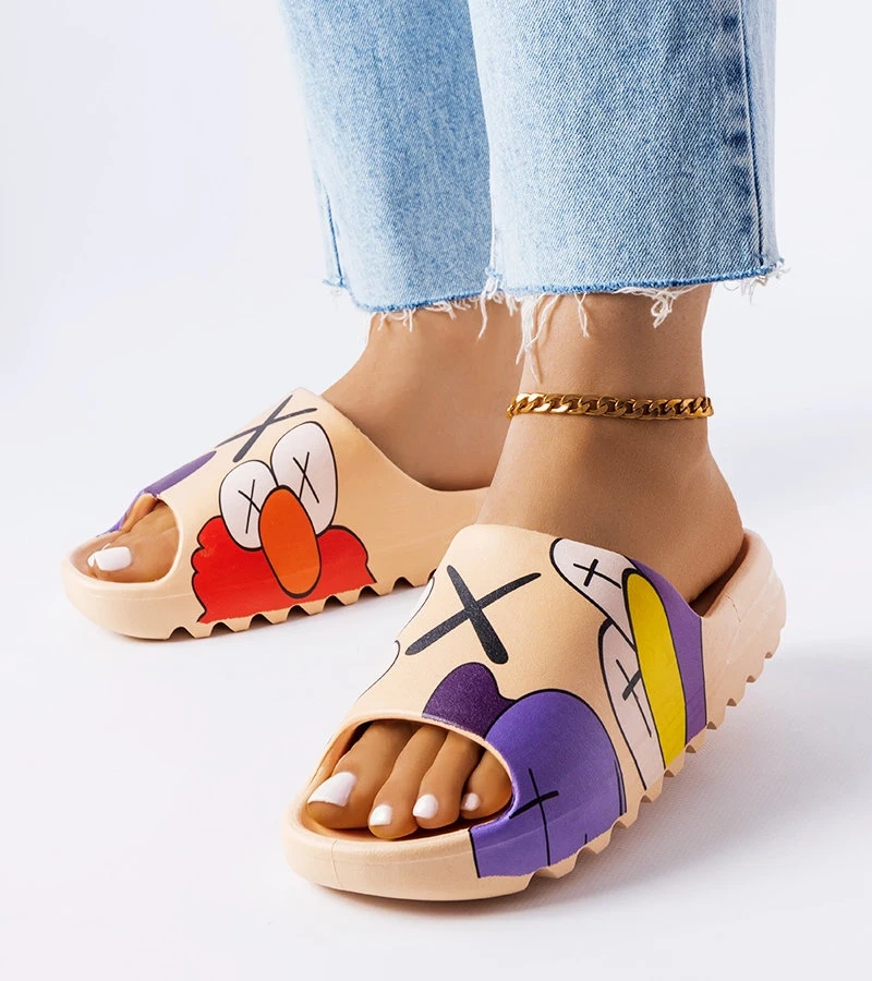 Griegsvei díszített cirkóniával díszített bézs papucsok.