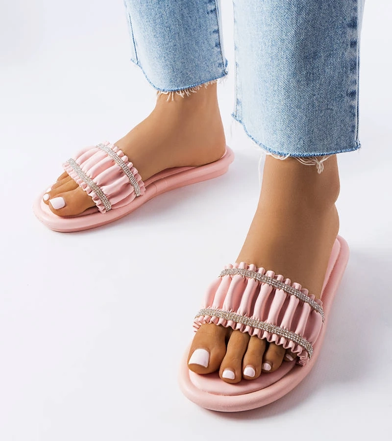 Rózsaszín lapos papucsok Launay alacsony sarkúval