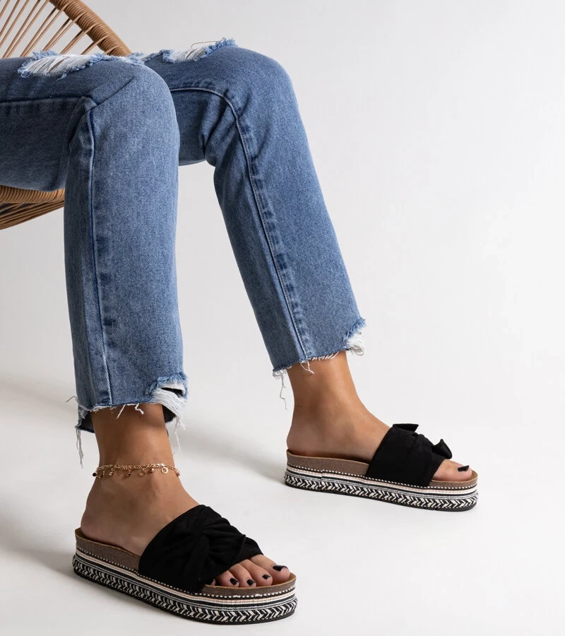 Masszív fekete Nibalie papucsok díszes talppal