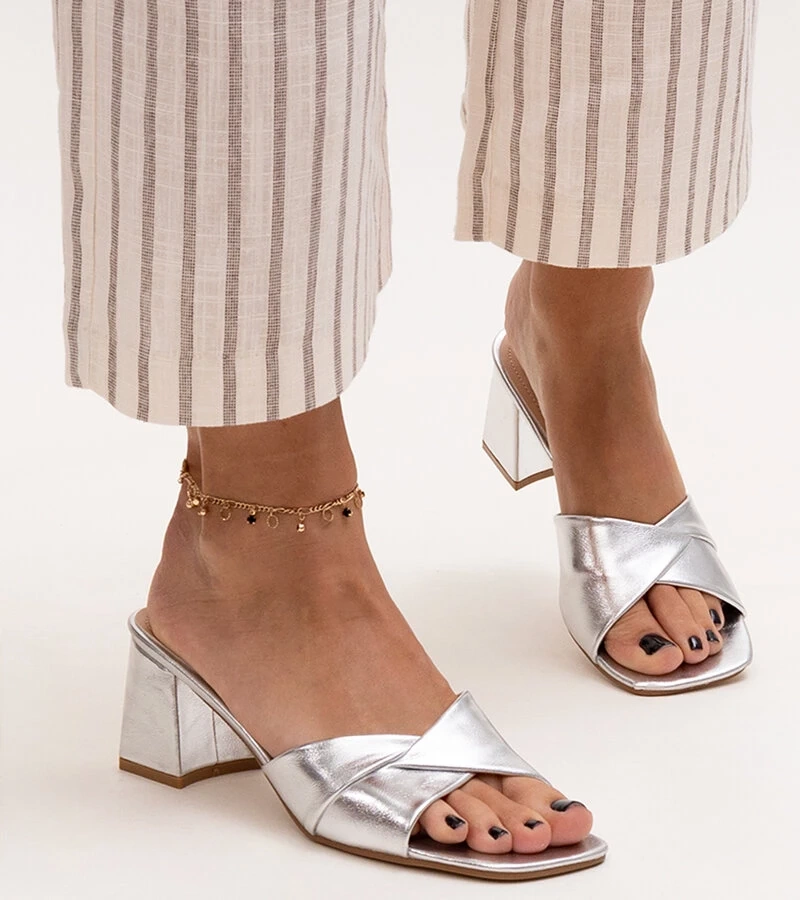 Adiam cirkóniával díszített fehér tűsarkú szandál