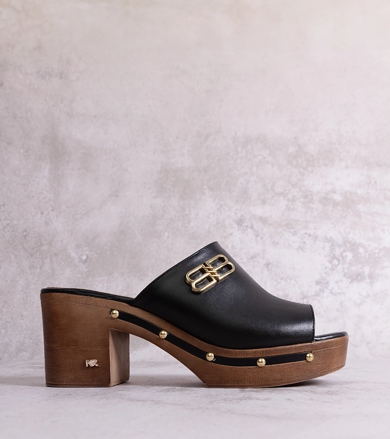 KARINO bőr magassarkú fekete papucsok