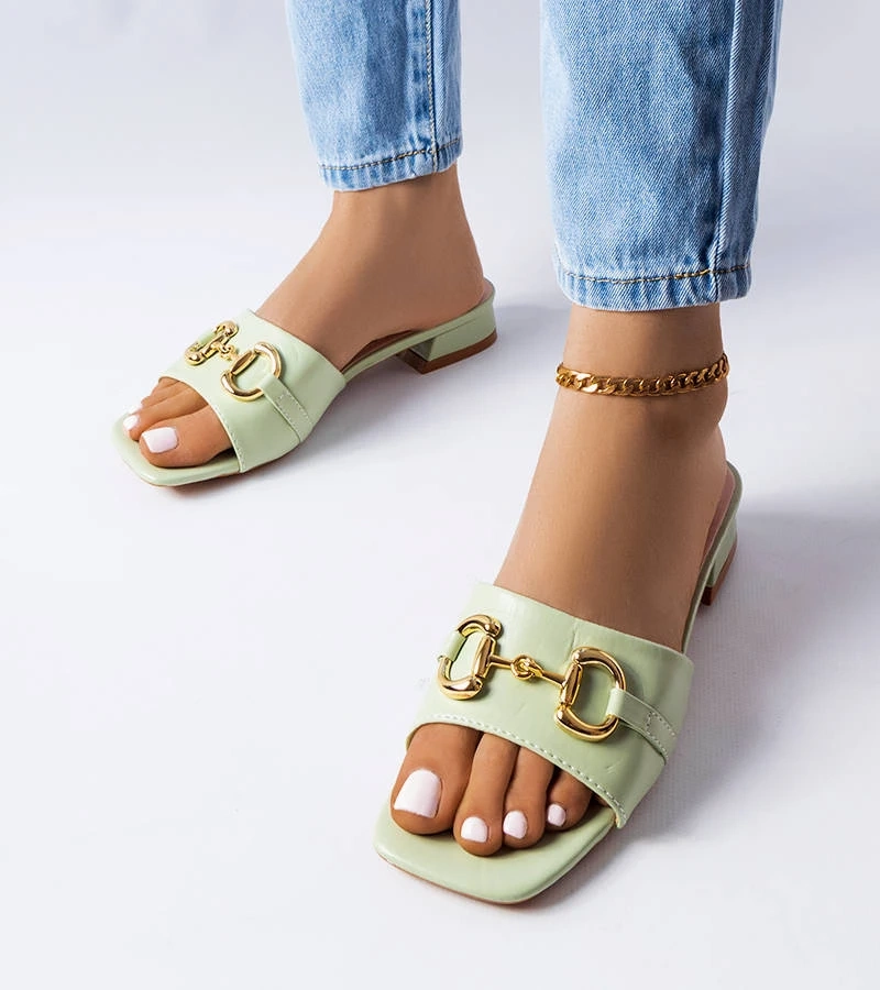 Zöld masnival díszített papucsok