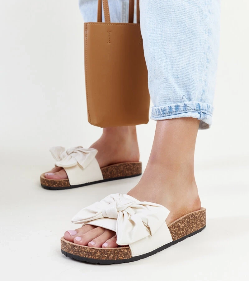 Világos bézs színű Petresa papucsok parafa talppal és masnival