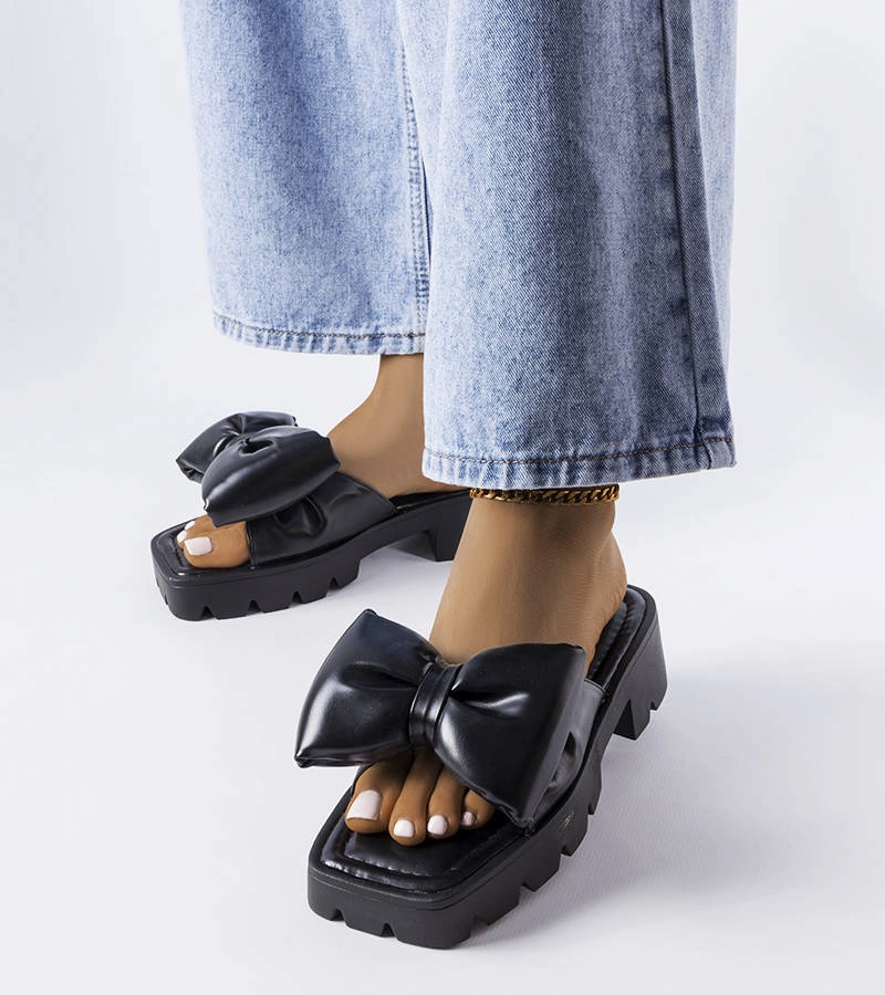 Fekete alacsony sarokkal rendelkező papucsok Fréchette