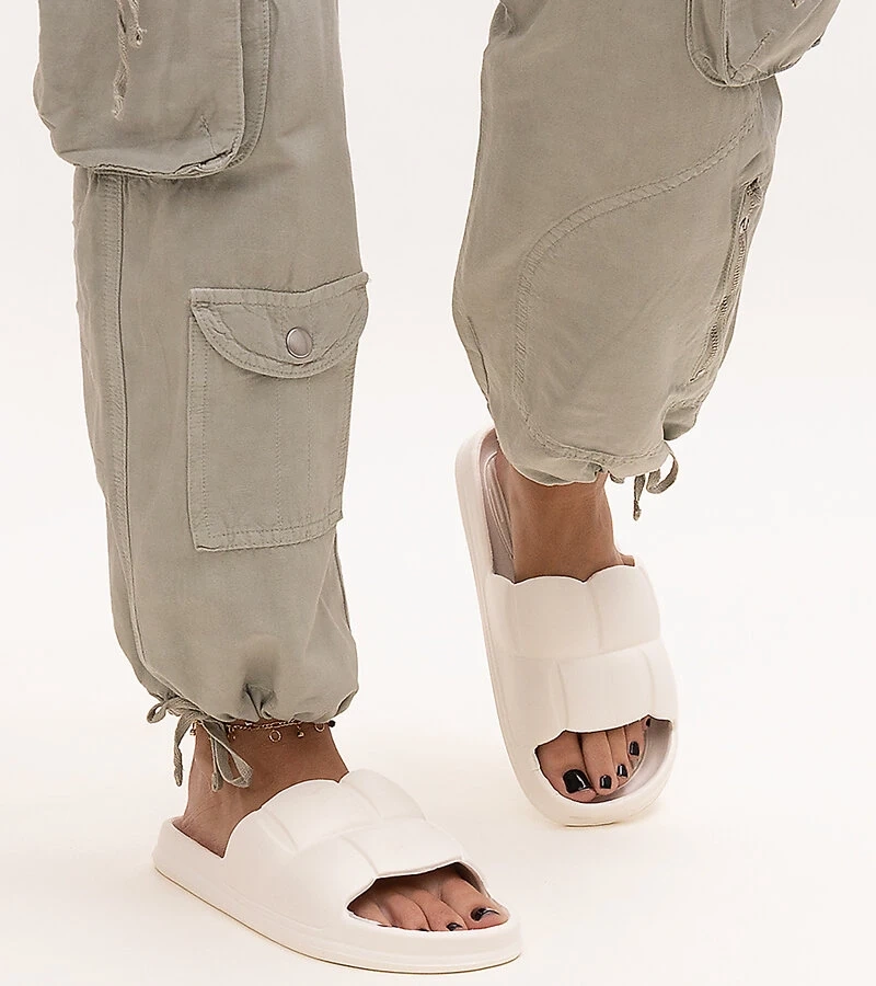 Világos bézs hímzett papucsok Marikától