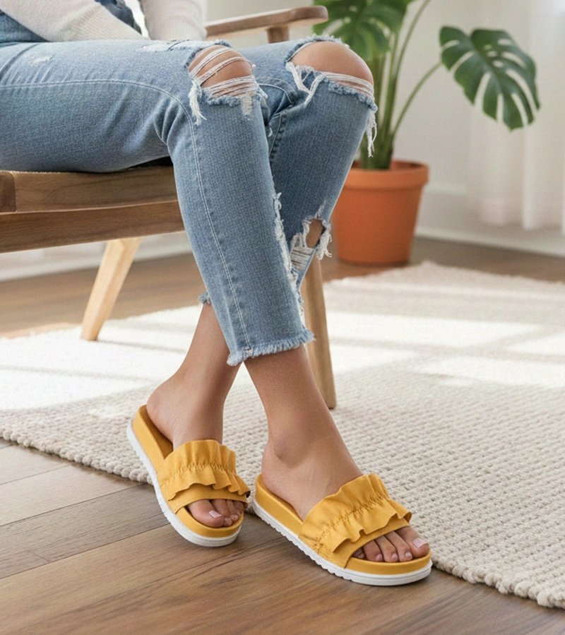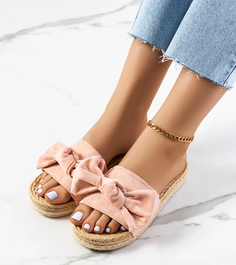 Eugene rózsaszín gumiból készült csatokkal ellátott papucsai