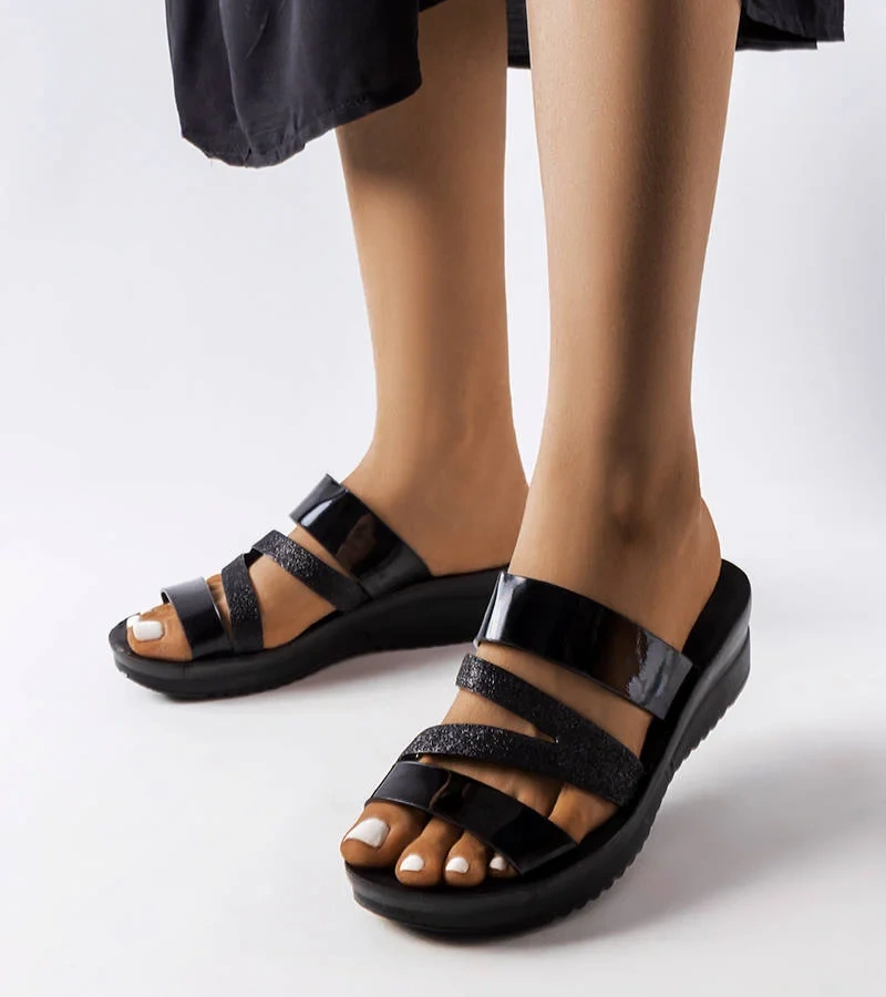 Fekete papucs futófelülettel és Lindale nyomtatással