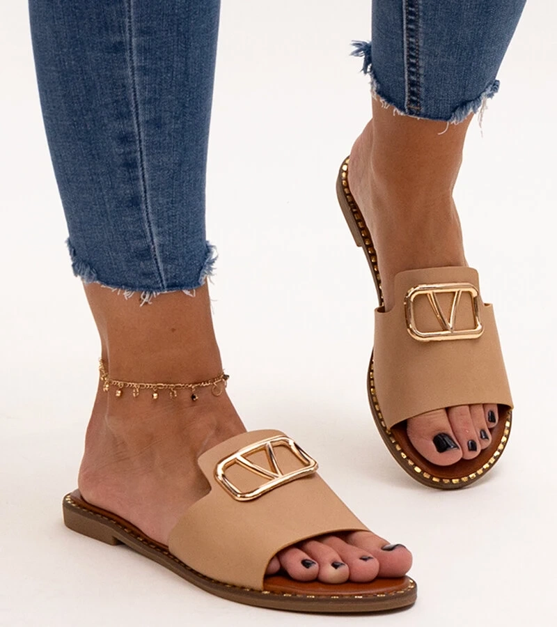 Masszív bézs papucsok díszes talppal a Nibalie-tól