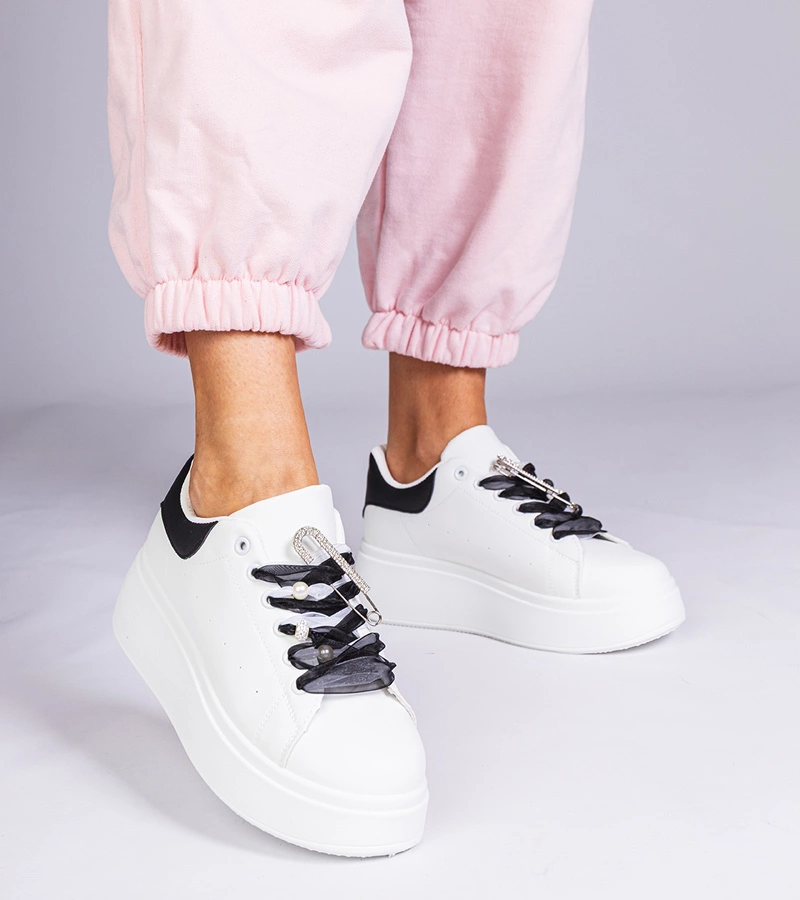 Fehér tornacipő fekete betéttel és cirkóniás tűsarokkal Floura