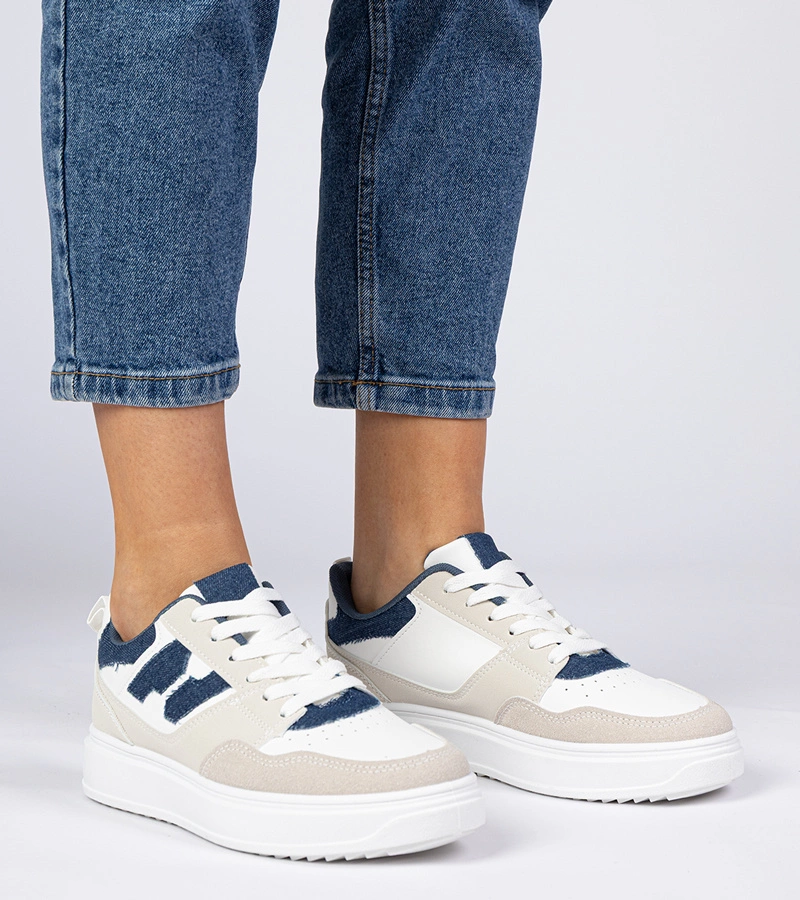 Fehér-kék sportos Lavilia ökobőr sneaker