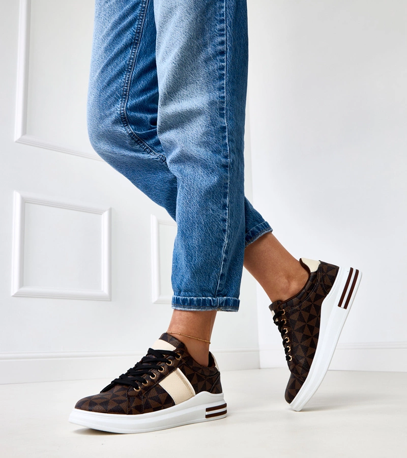 Bézs női sportos tornacipő leopárdmintás betéttel Sandra
