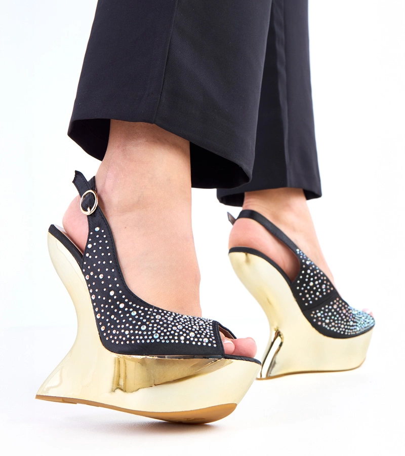 Fekete átlátszó magassarkú szandálok cirkóniával Kloksi