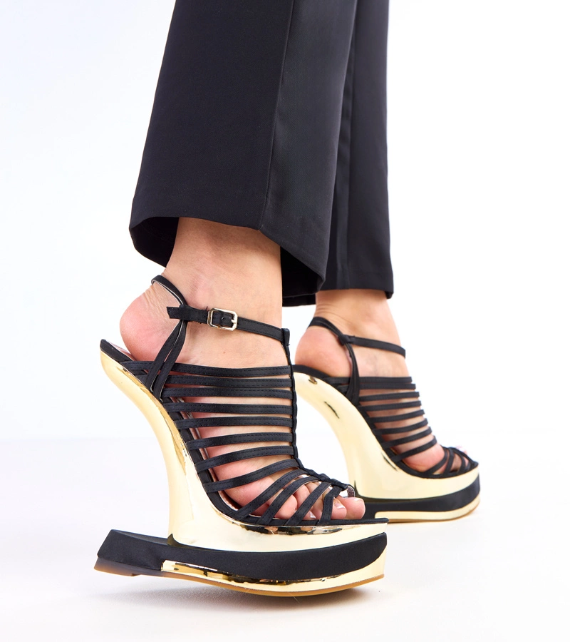 Fekete szandálok oszloppal díszítve Elevira csattal