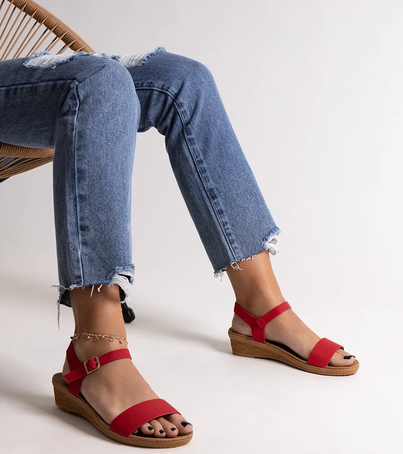 Piros alacsony sarokkal rendelkező szandál Foucault