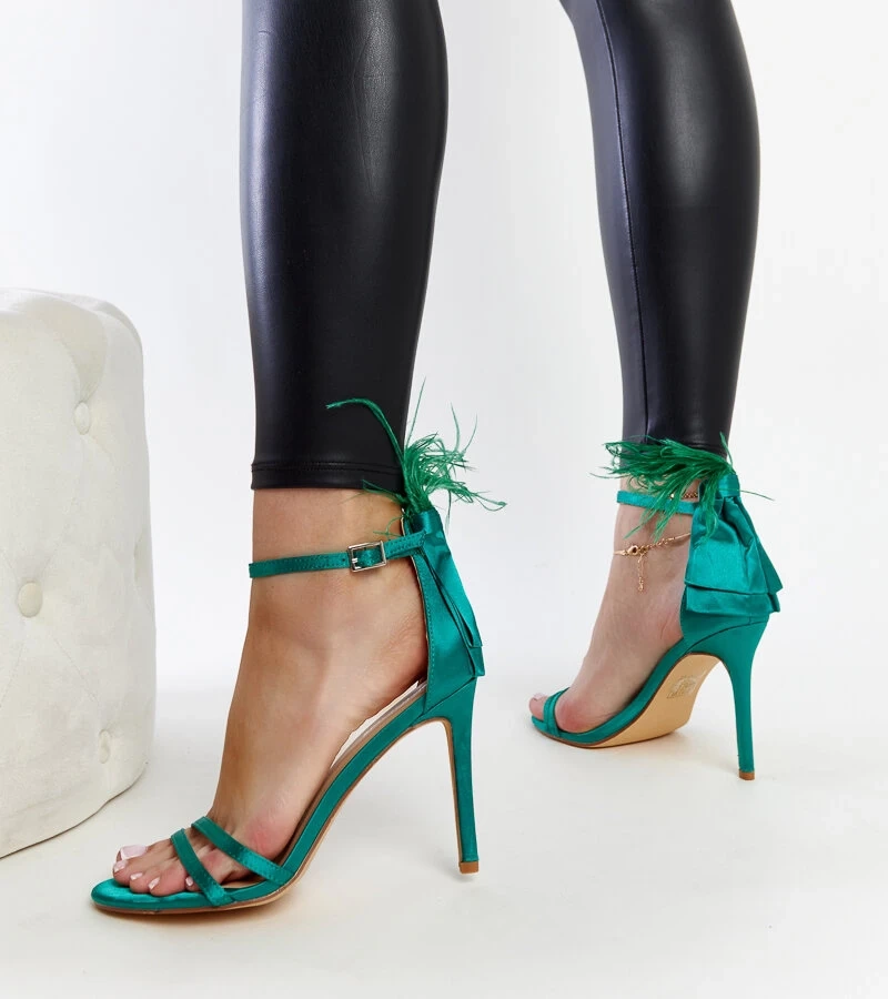 Zöld csillogó magassarkú szandál Delinda pánttal