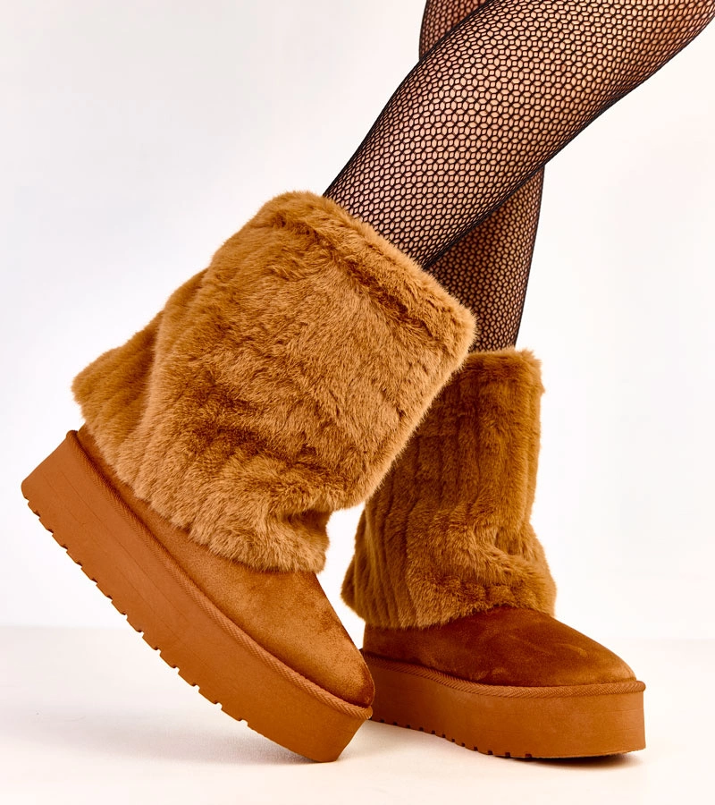 Sötétbézs platformos hótaposók szőrmés szárral Leda