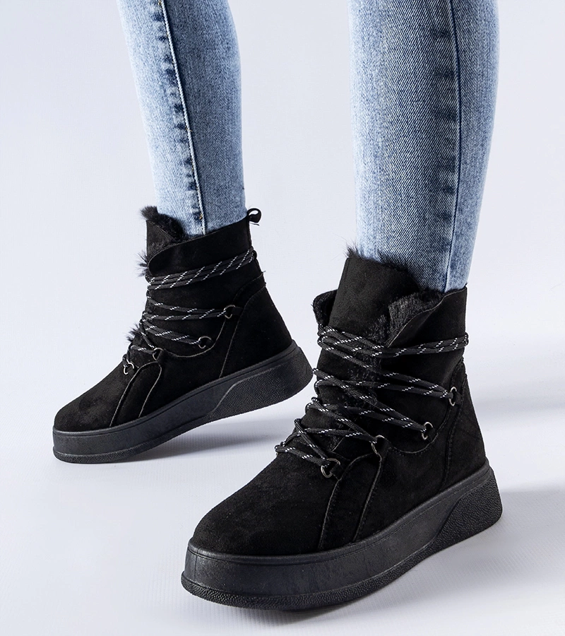 Fekete rövid béléssel ellátott Snyder hócsizma