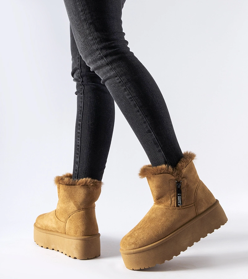 Sötétbézs platformos hócsizmák szőrmével bélelve Andra