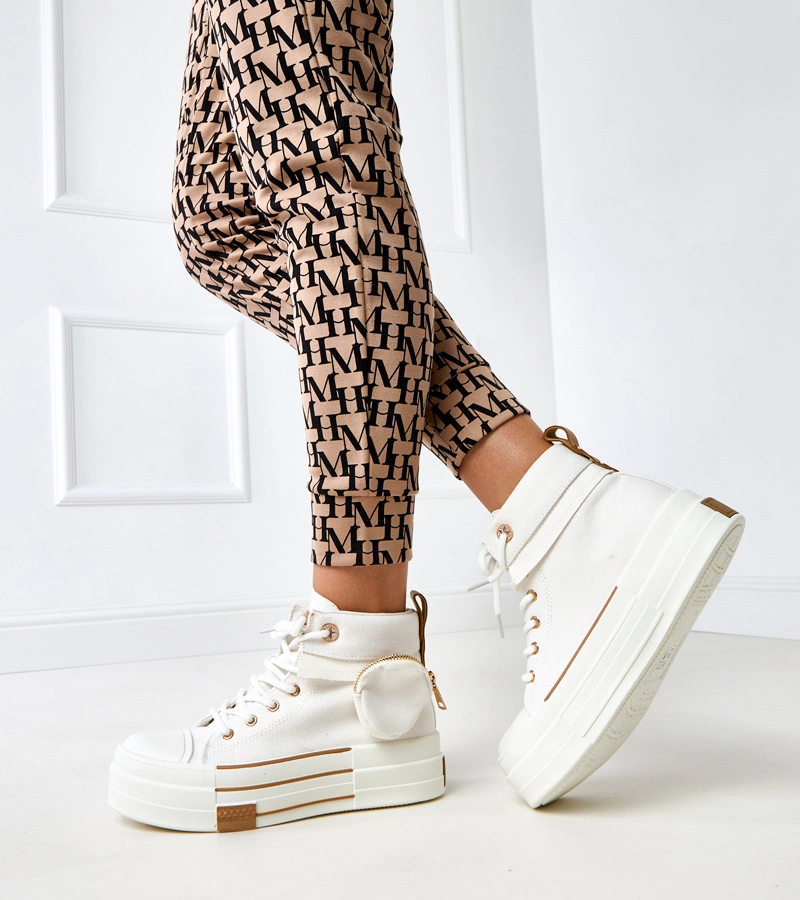 Fehér-ezüst magas platformos Lengyel edzőcipő
