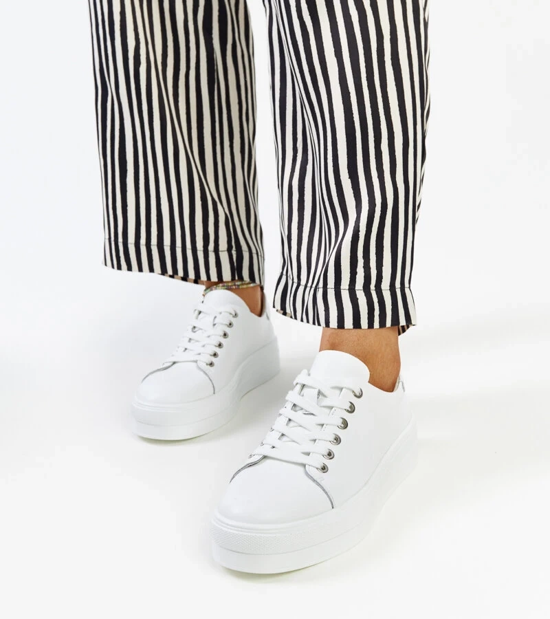 Fehér hosszú bőr tornacipő Carassai