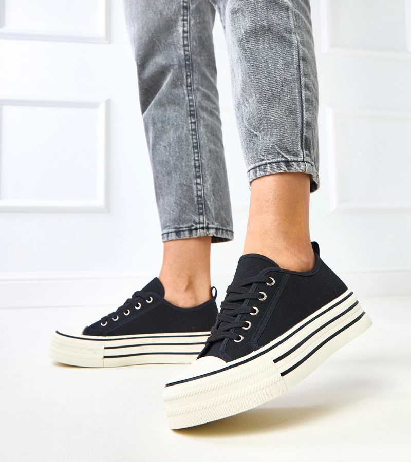 Fekete női CROSS JEANS vastag talpú tornacipő
