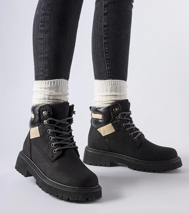 Fekete bélelt bakancsok díszített kötéssel Amla