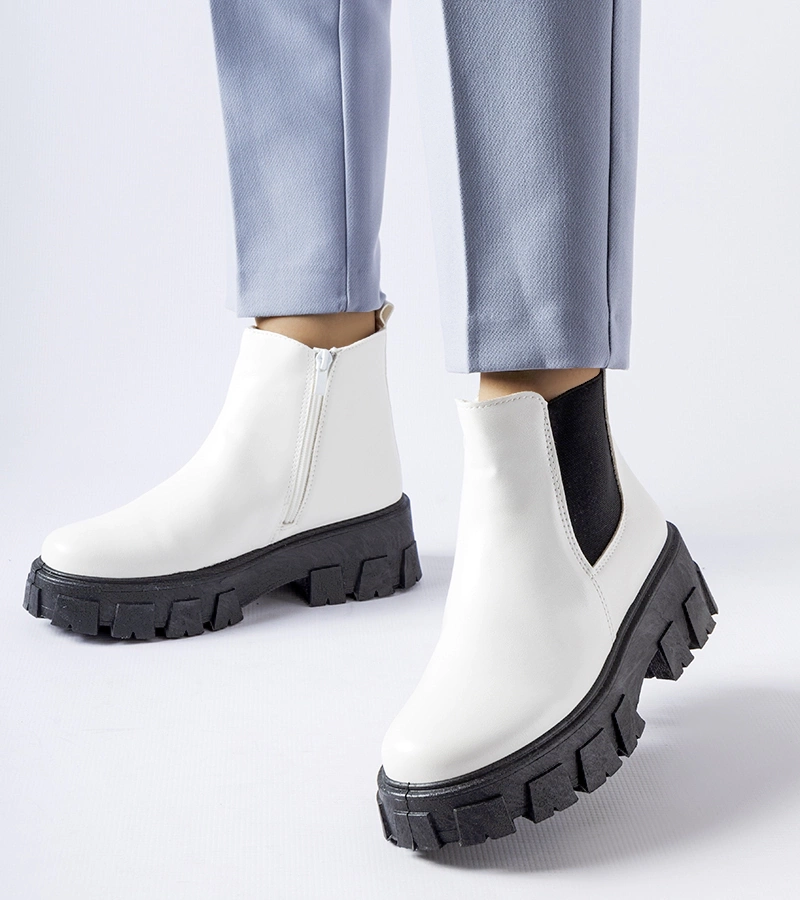 Fehér platformos bokacsizma Ascea domborítással