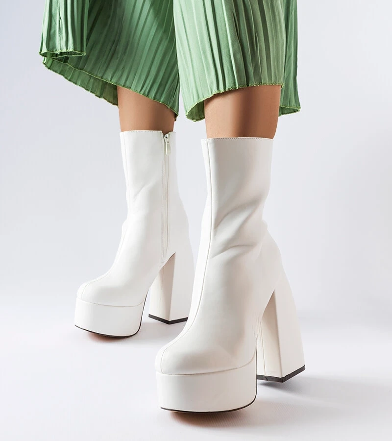 Fehér bokacsizma masszív sarokkal Watson