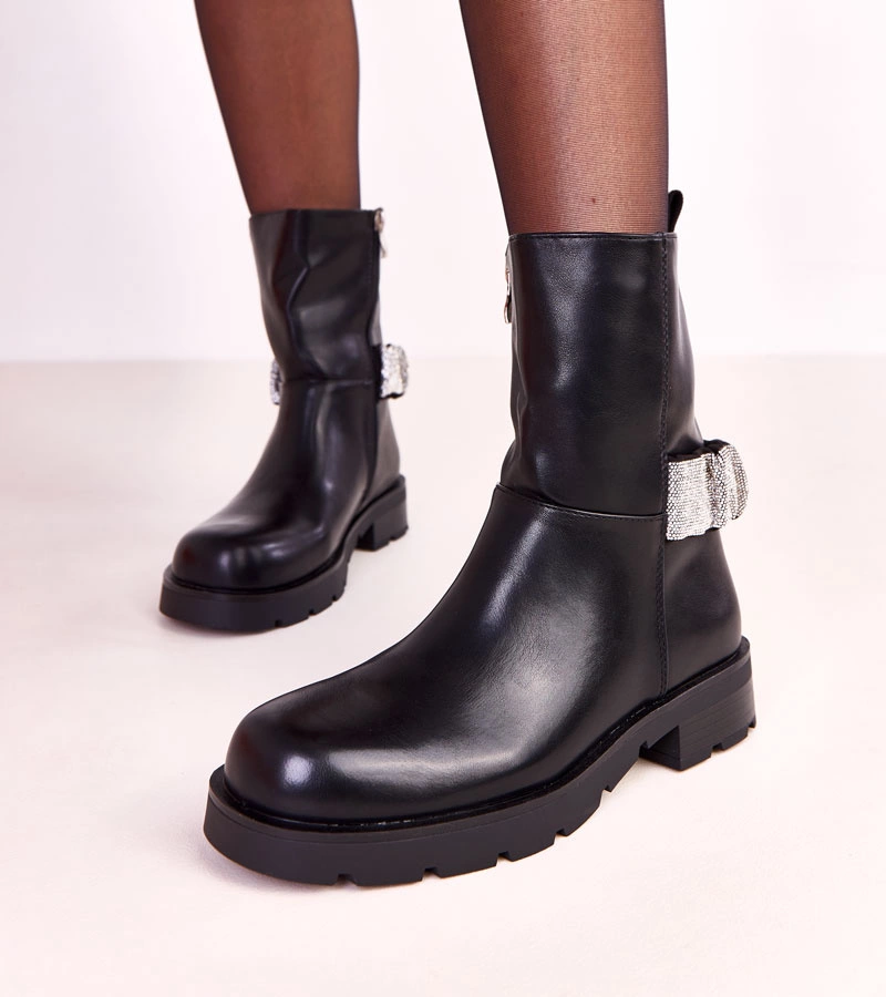 Fekete bokacsizma felhajtott szárú és szélén cirkóniával Yemi