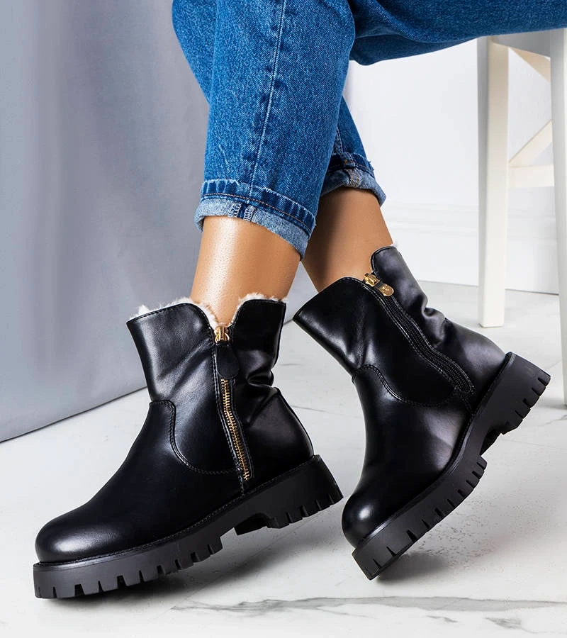 Fekete bélelt klasszikus bokacsizma Odila
