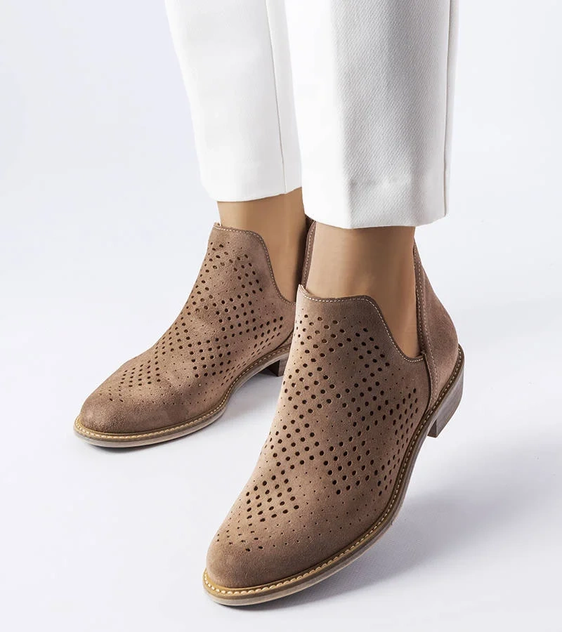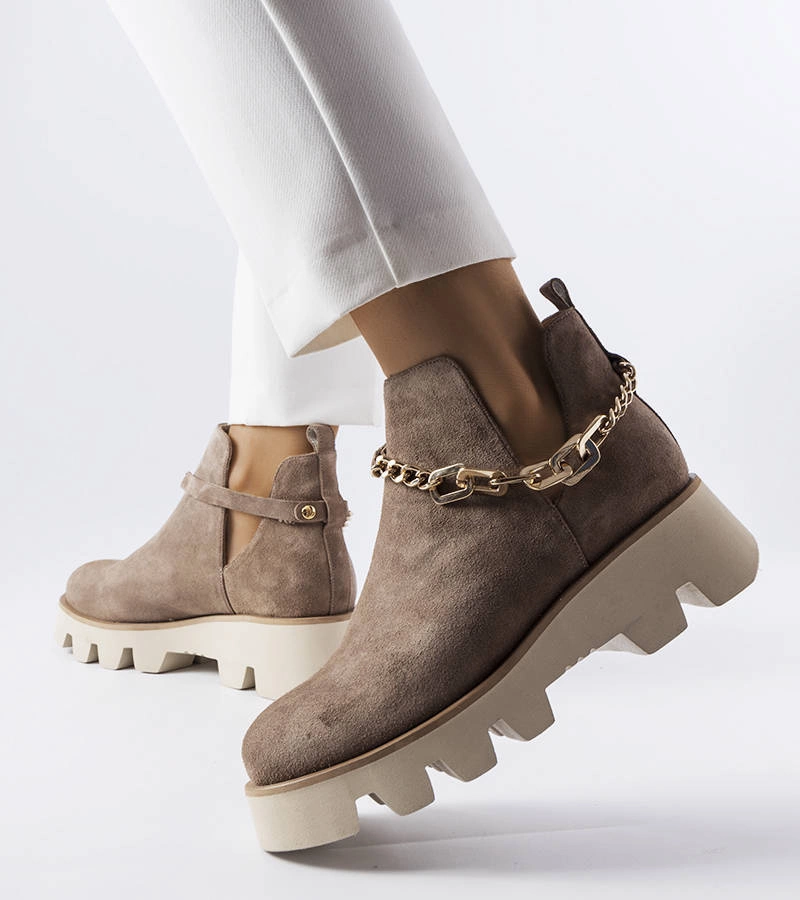 Barna bokacsizma Lacombeval, szabálytalan szárral.
