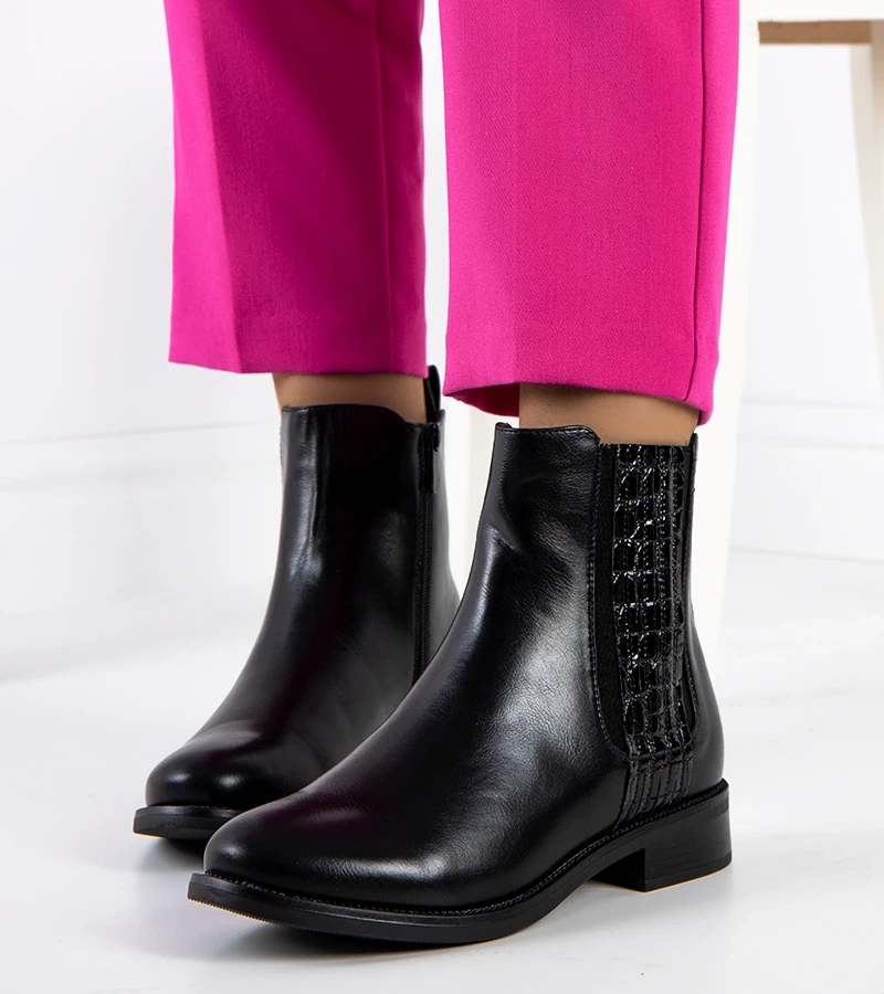 Fekete fényes bokacsizma Goldenleaf